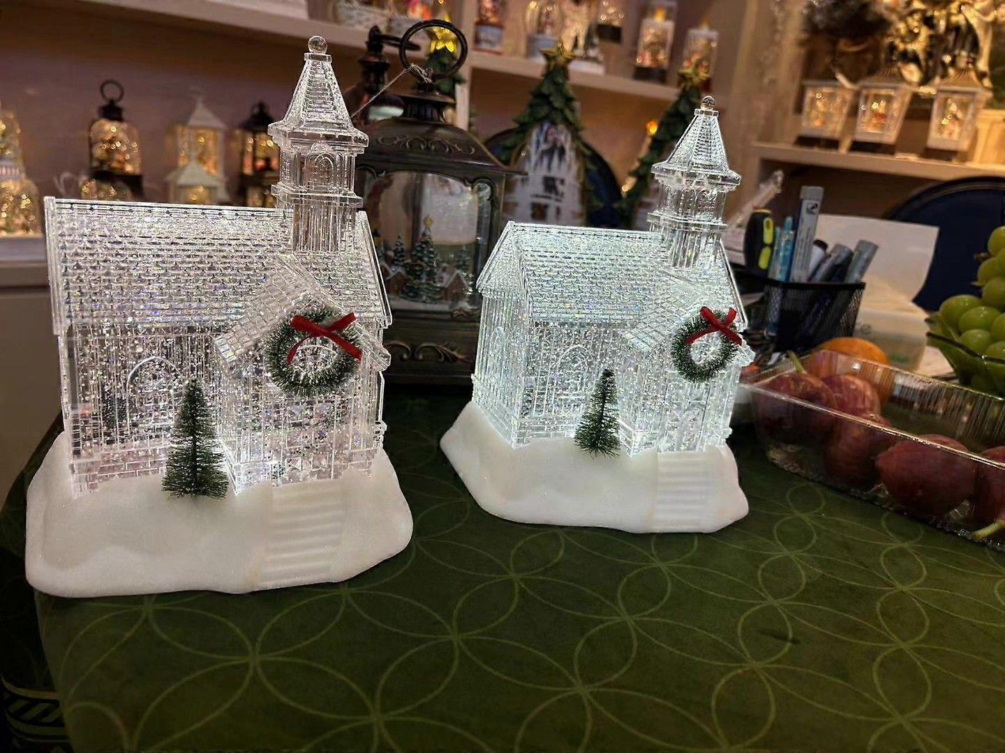 Christmas Church Snow Globe Decoration Glitter Ornament Light Up Xmas Home Decor