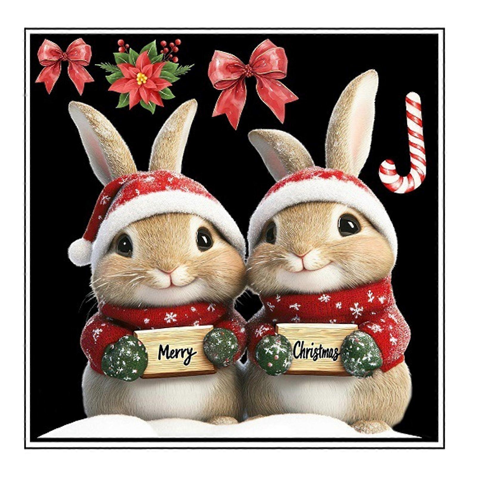 Merry Christmas Rabbit Window Cling Removable Waterproof Santa Hat Couple Bunny Static Glass Sticker Holiday Party Decoration Decal