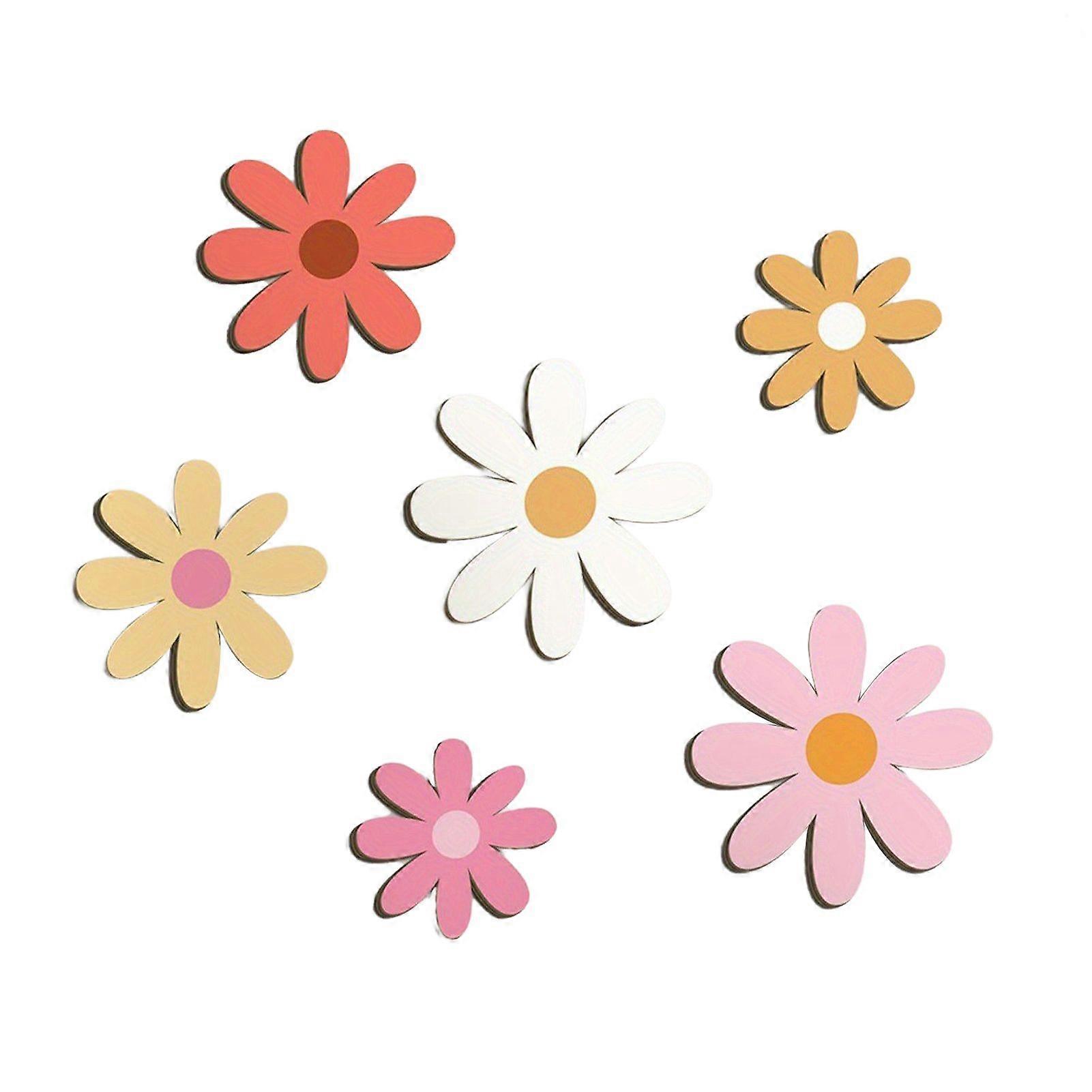 6Pcs/Set Wooden Flower Wall Decoration Farmhouse Rustic Floral Wall Art Home Office Living Room Bedroom Wall Hanging Ornament