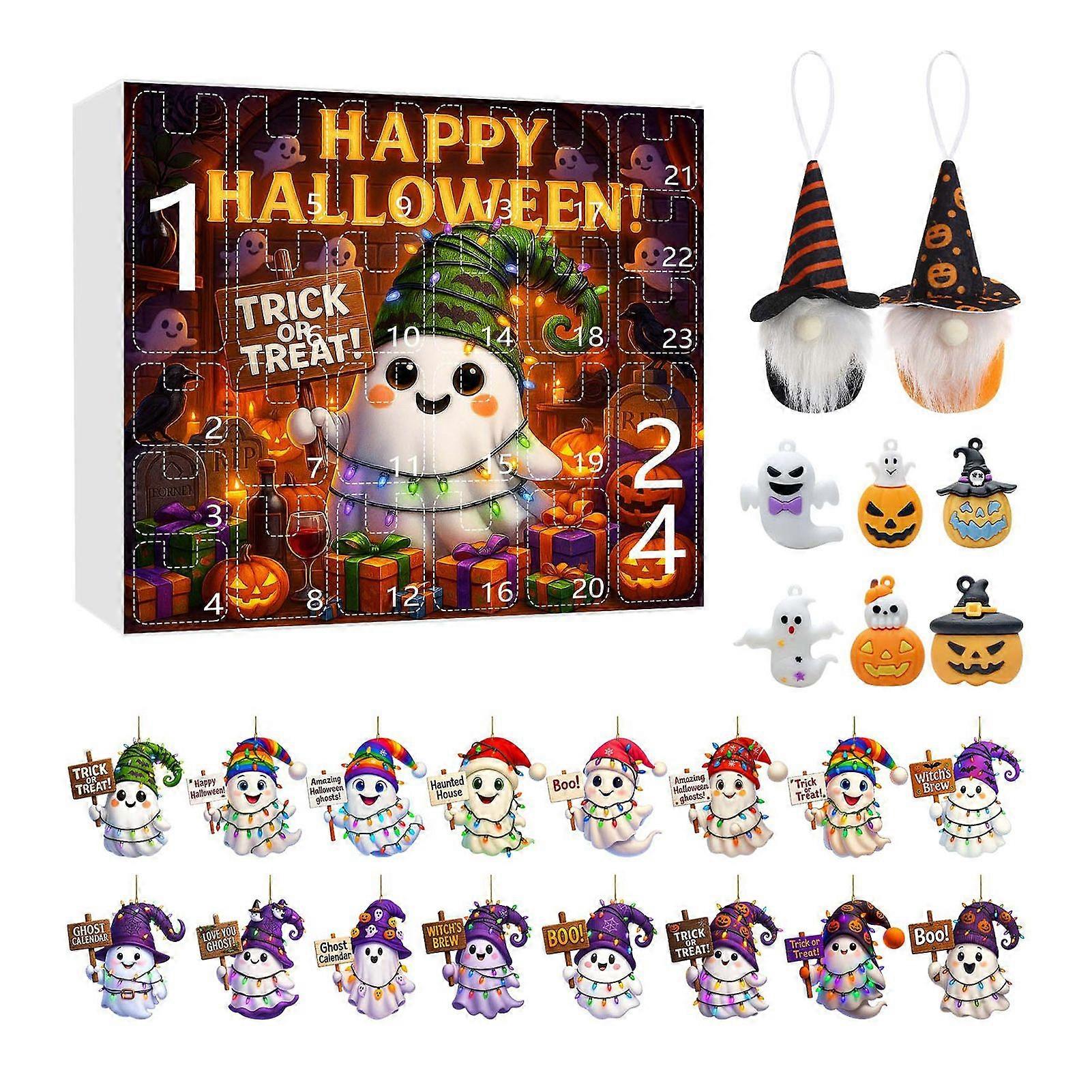 Halloween Advent Calendar 2025 24 Day Countdown Calendar with Acrylic Ghost/Gnome/Pumpkin Ornaments for Indoor Outdoor Home Party Decor