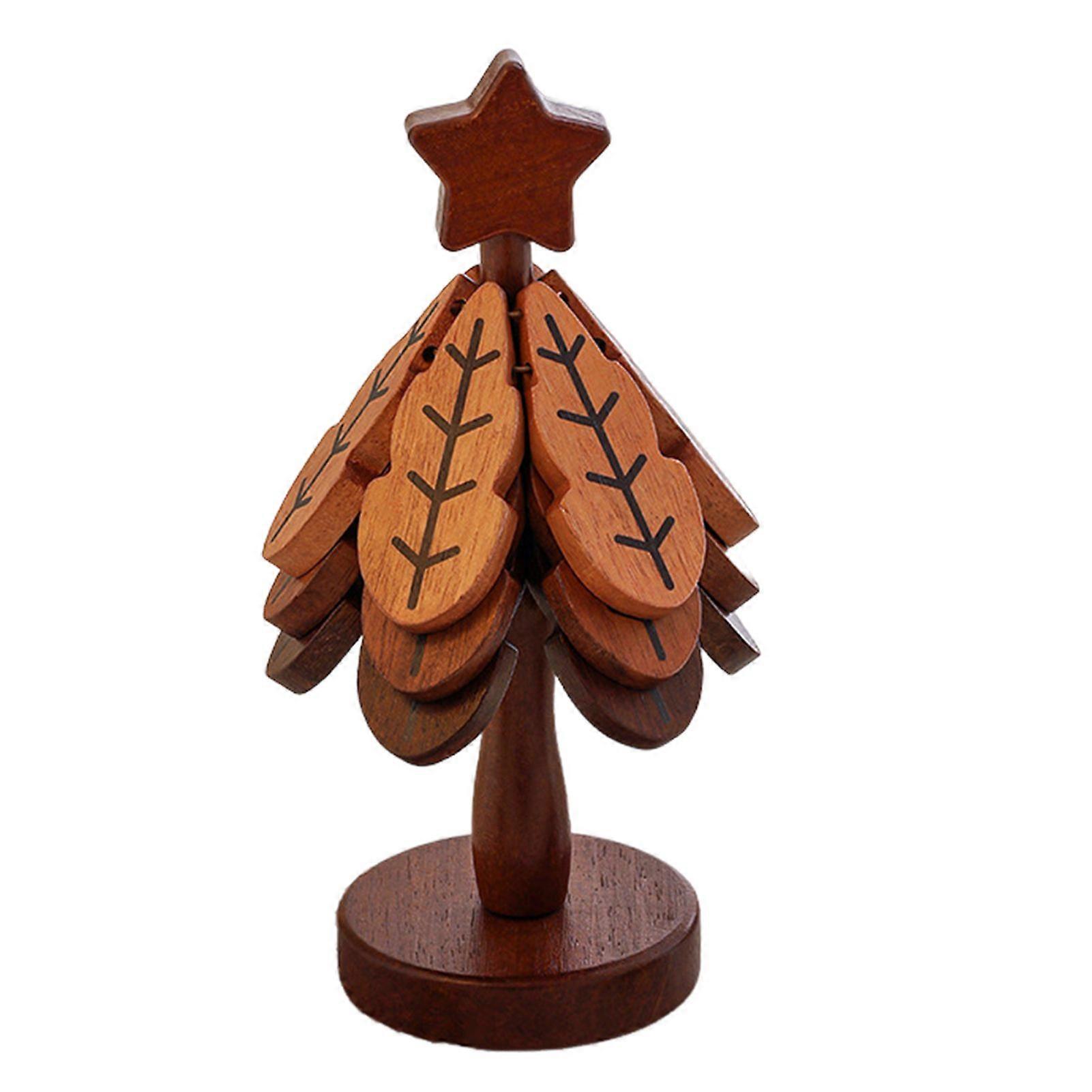 Wooden Christmas Tree Trivets for Hot Dishes Foldable Coasters Pot Holders Heat Resistant Silicone Table Protector Creative Gift for Home Kitchen