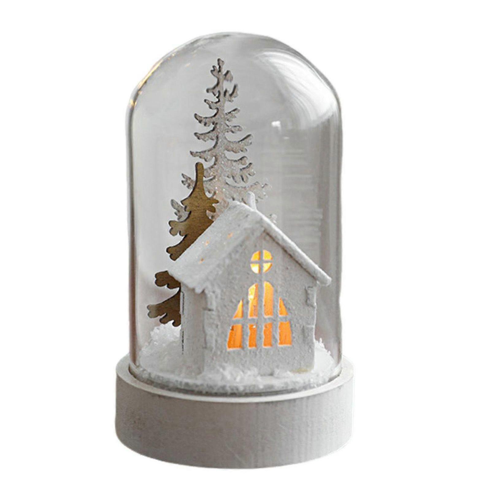 Christmas Figures in Glass Dome Tabletop Decoration LED Light Up Christmas Cloche Ornaments for Indoor Home Tabletop Decor