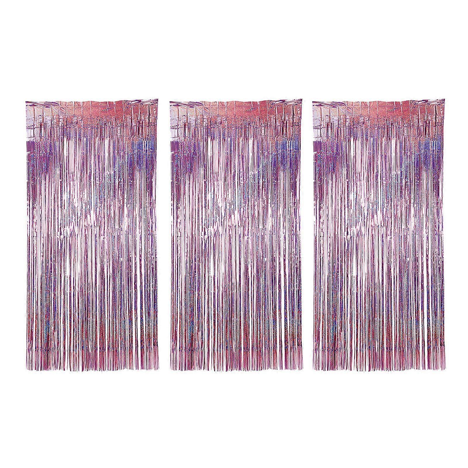 3Pcs Rain Curtain 1 x 2.5m Sparkling Foil Fringe Backdrop Set Tassel Background Curtains Weddings Photo Booth Props Party Decoration