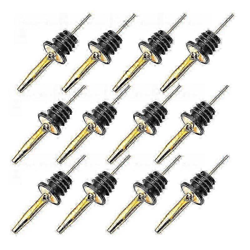 12pcs Stainless Steel Classic Bottle Pourers Tapered Spout - Liquor Pourers With Rubber Dust Caps, Gold Edition 1110