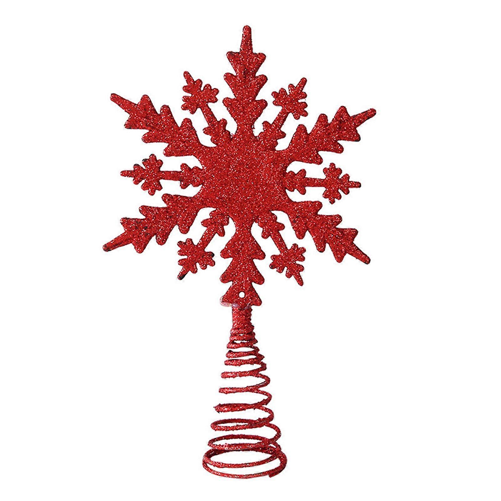 Jikaixiang Snowflake Tree Topper Gold Red Glittered Iron Star for Christmas Tree Easy Installation Festive Decoration for Holiday Parties