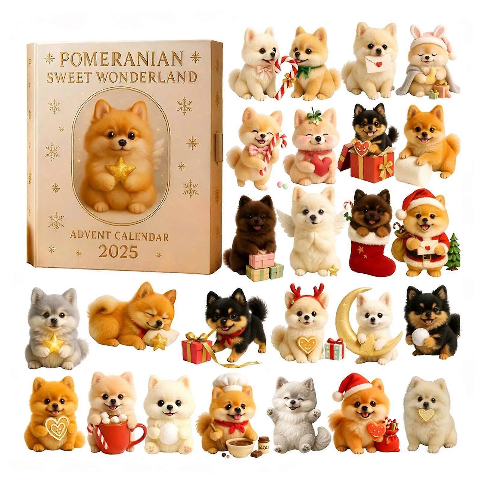 Jikaixiang Pomeranian Sweet Wonderland Advent Calendar 2025 24 Days Christmas Countdown Calendar Holiday Dog Decor