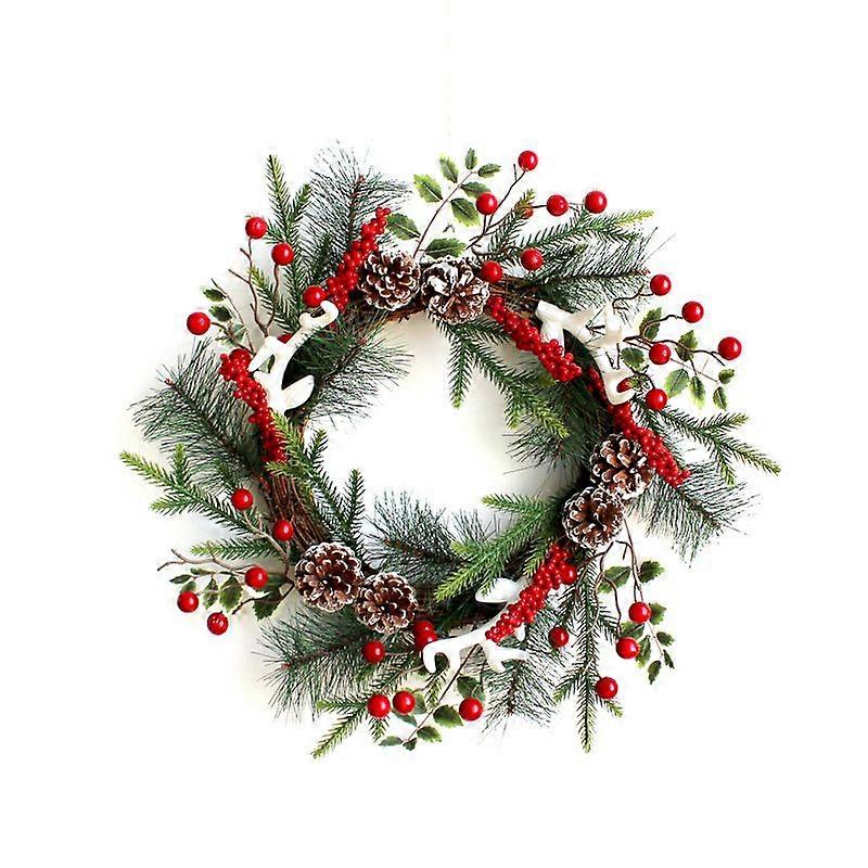 Artificial Christmas Wreath, Farmhouse Handmade Rattan Small Christmas Door Hanging with Red Berry, Pine Cones for Indoor Outdoor DIY Christmas Decora