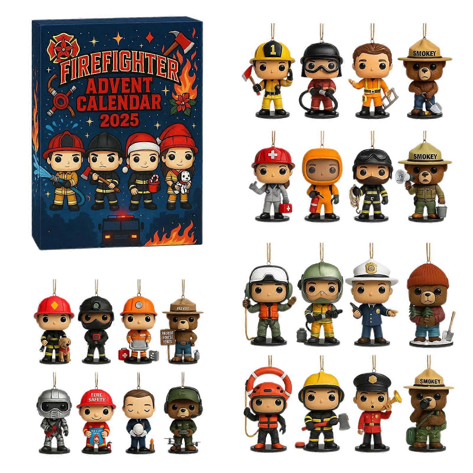 Jikaixiang Christmas Advent Calendar 2025 24 Days Firefighter Countdown Calendar with Collectible Figures Holiday Gifts for Kids Adults