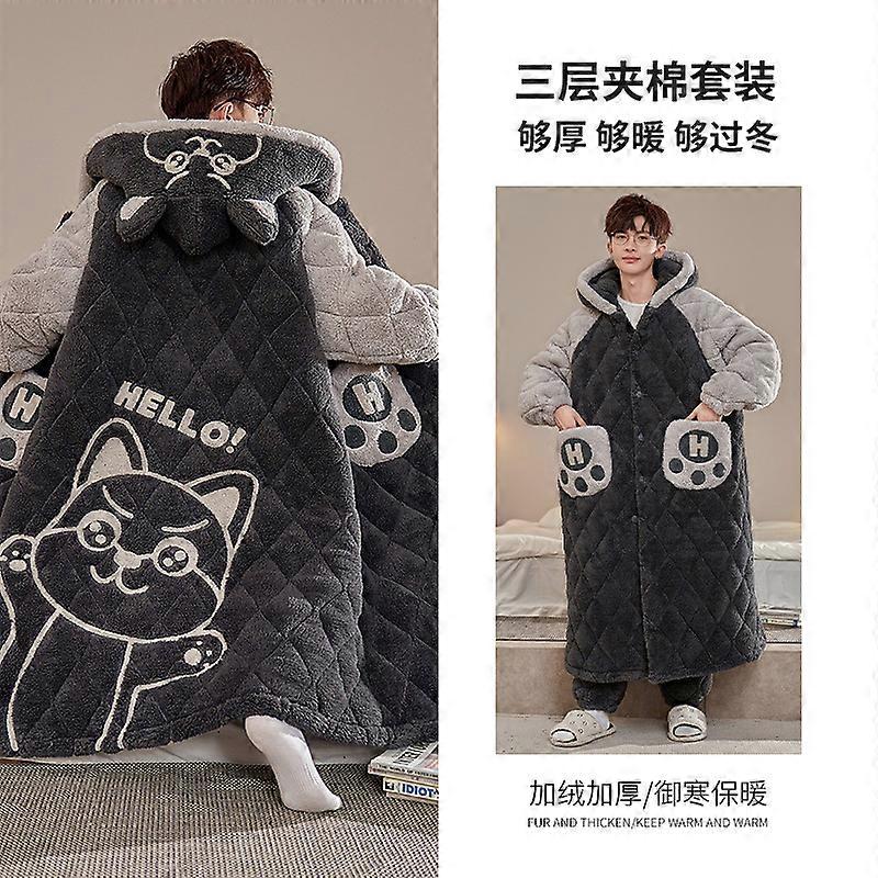 Men's winter pajamas coral fleece thickened velvet new style youth nightgown men's home clothes