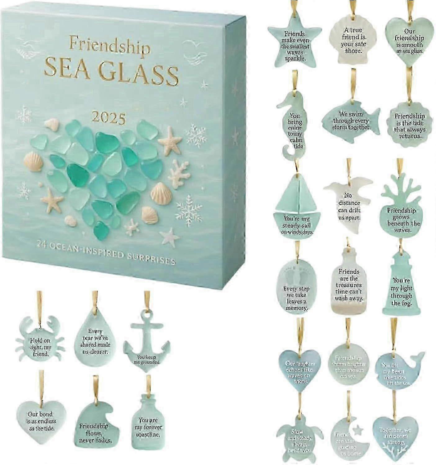 Quality 2025 Sea Glass Advent Calendar, 24 Day Countdown Christmas Calendar with Sea Glass Ornaments, Friendship Pendant, Christmas Gift for Friends a