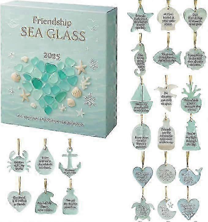 Quality 2025 Sea Glass Advent Calendar, 24 Day Countdown Christmas Calendar with Sea Glass Ornaments Friendship Pendant Gift for Friends and Family