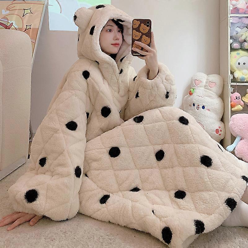 Women's winter three-layer quilted extra-thick coral fleece long nightgown