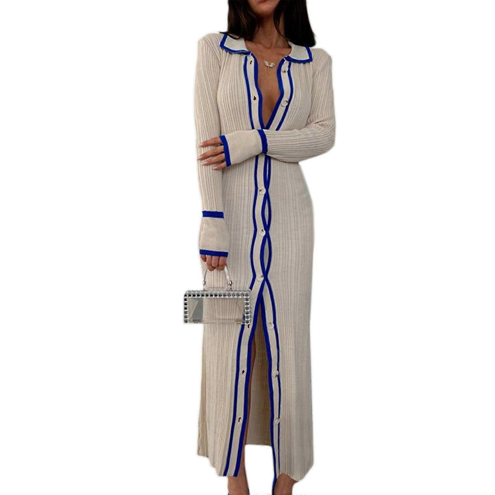 Features: Slim fit bodycon sweater dress knitted with soft material lightweight,gentle toward the skin and warm for winter fall . The sweater dress features thick rib knit stitching throughout with a cozy button down collar neck ,wrap you just right The whole sweater has a nice feminine shape with big stretch.not too tight so it feels really comfortable. it can be daily winter wear and will show your figure perfectly. The collar neck is great too, not too tight, stays up and keeps its shape Bodycon sweater dress suitable for casual, sports, workout,dating,holiday, ravelling or party Wonderful gift for her,birthday gift ,anniversary gift,christmas gift , new year gift Specifications: Material:Acrylic Color:Green,,Blue,Rose Size:S Length:115cm(45.28inch) Waist:64cm(25.20inch) Bust:72cm(28.35inch) Sleeve:61cm(24.02inch) Size:M Length:117cm(46.06inch) Waist:68cm(26.77inch) Bust:76cm(29.92inch) Sleeve:62cm(24.41inch) Size:L Length:119cm(46.85inch) Waist:72cm(28.35inch) Bust:80cm(31.50inch) Sleeve:63cm(24.80inch) Package Includes: 1 Piece Women Knit Button Down Cardigan Maxi Dress note: Please allow 1-2cm errors due to manual measurement,please make sure that you do not mind before you order. Due to the difference between different monitors, the picture may not reflect the actual color of the item.