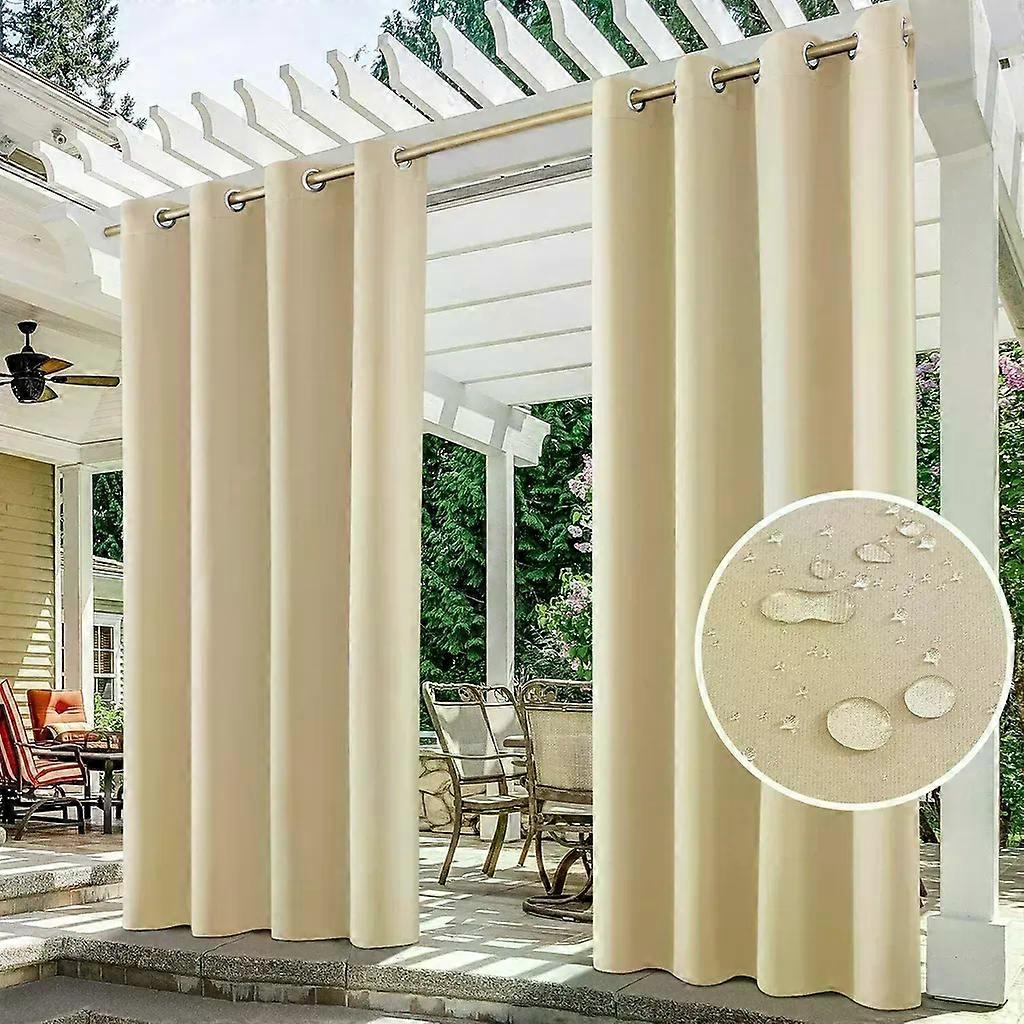Set of two outdoor curtains, blackout curtains, suitable for gardens, patios, and balconies, waterproof and sun-resistant (132 x 213 cm, beige).