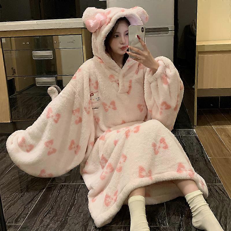 Coral Fleece Pajamas Women's Autumn and Winter Plush Thick Winter Long Nightdress Loose Nightgown