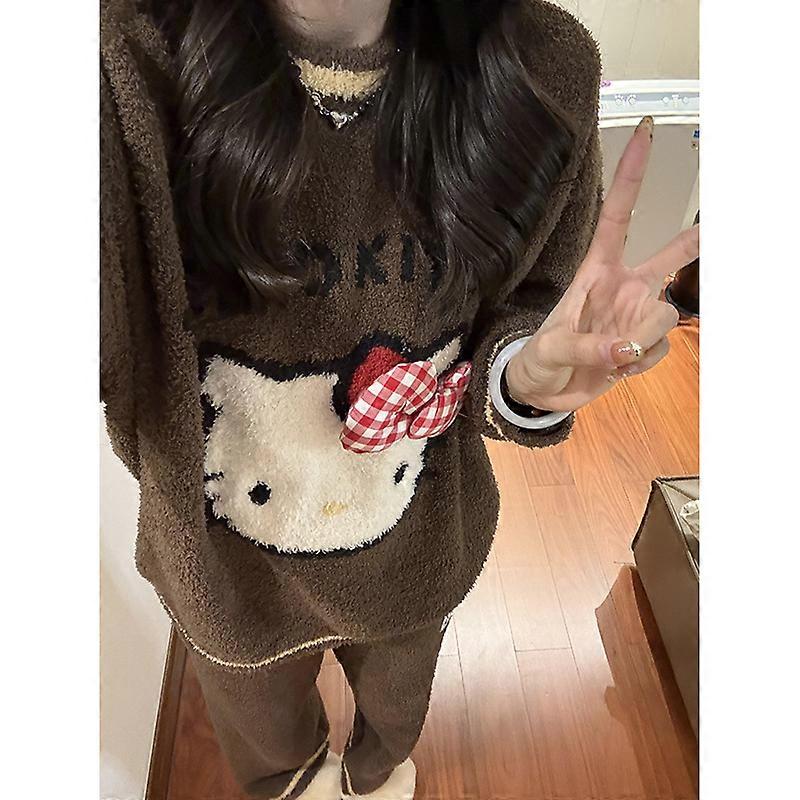Winter Warm Sleepwear Women kitten Pajamas Set Fleece Loungewear Schoolgirls Comfortable Cartoon Nightclothes