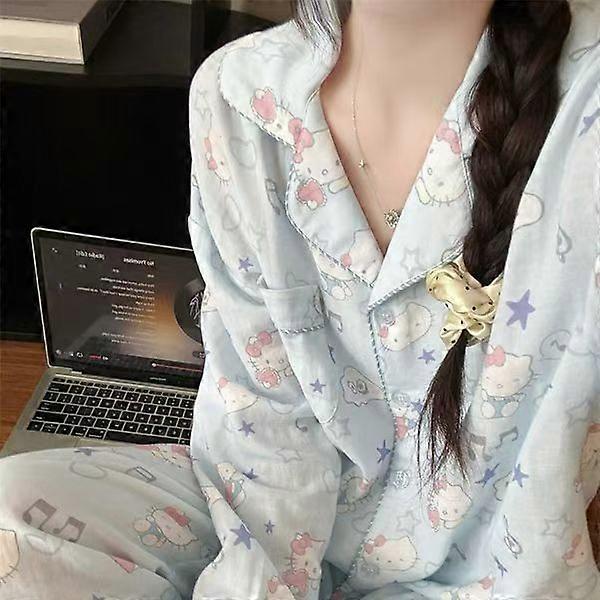 2Pcs Anime kitten Women Pajamas Spring Autumn Set Kawaii Nightgown Cartoon Tops Pants Beautiful Girl's Home Clothes Gift