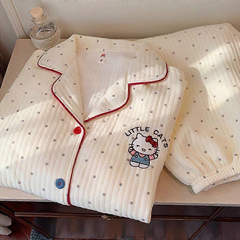 Kawaii Hellokitty Cotton Pajamas Girls Long-Sleeved Tops PuppyAutumn Winter Cartoon Cotton Clothes Casual Home Clothesset
