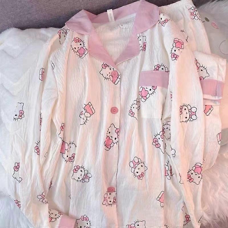 Y2K kitten Pajama Set Anime Sweet Cute Household Clothes Summer Nightshirt Set Girl's Student Sleepcoat Home Wear