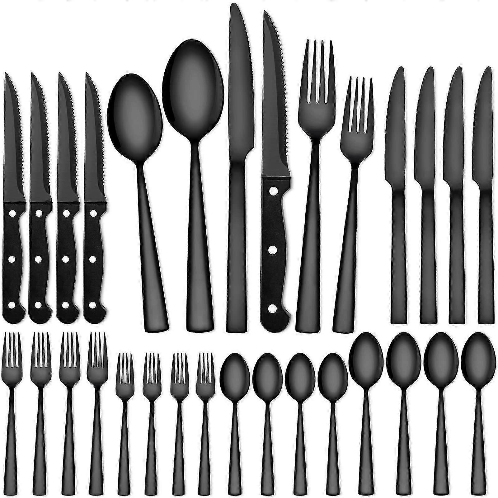 24-Piece Stainless Steel Black and Silver Flatware Set for 4, Modern Design, Dishwasher Safe, Home Kitchen Use SZRH