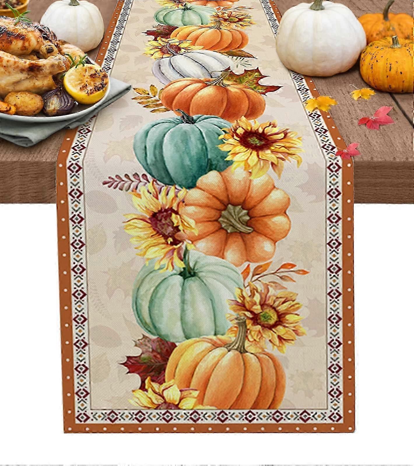 Thanksgiving Fall Pumpkin Maple Leaf Orange Lattice Table Runner for Kitchen Dining Table 13x90 Inches SZRH