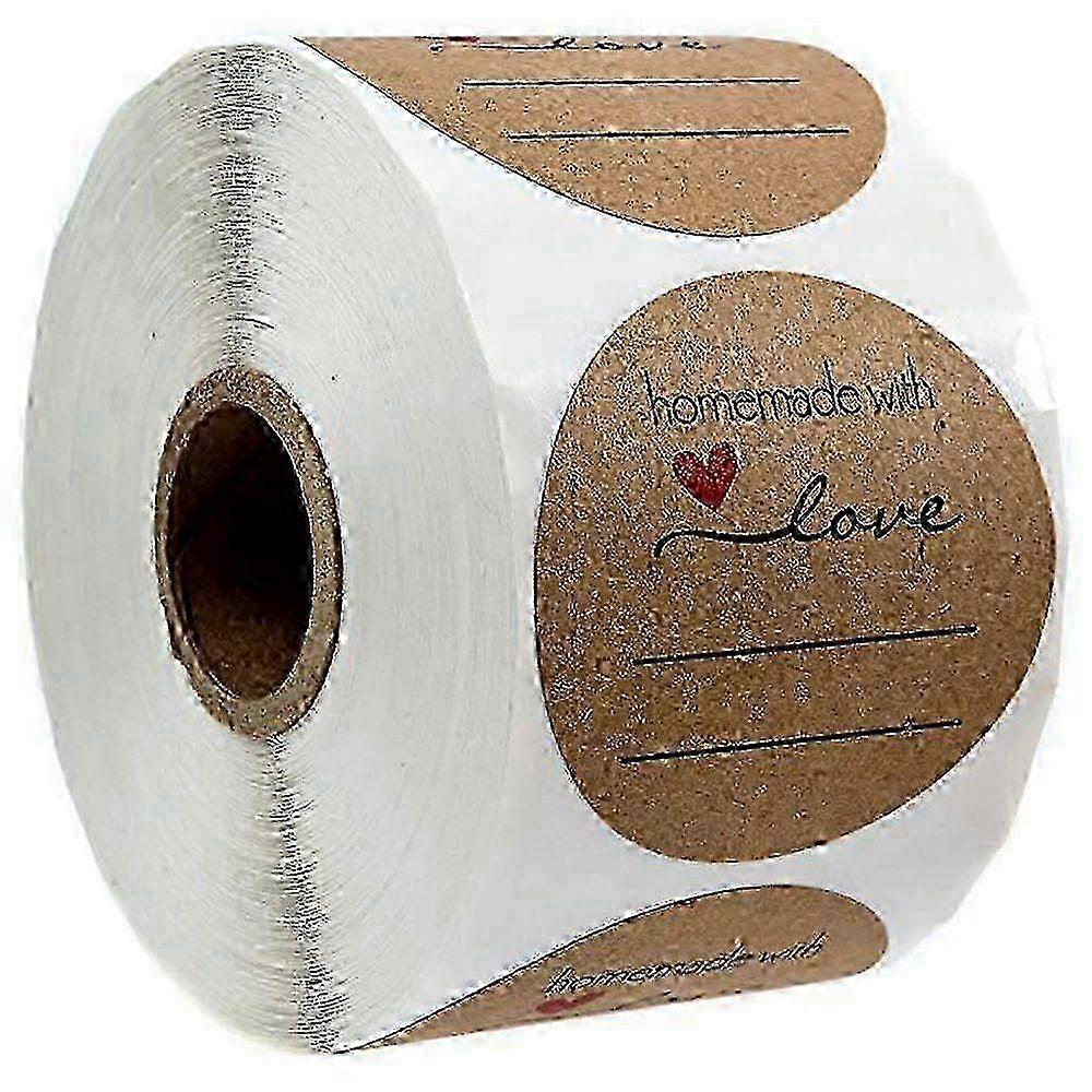 Pack of 500 kraft paper stickers, labels, round, self-adhesive, homemade with love, gift stickers, gift stickers for bak