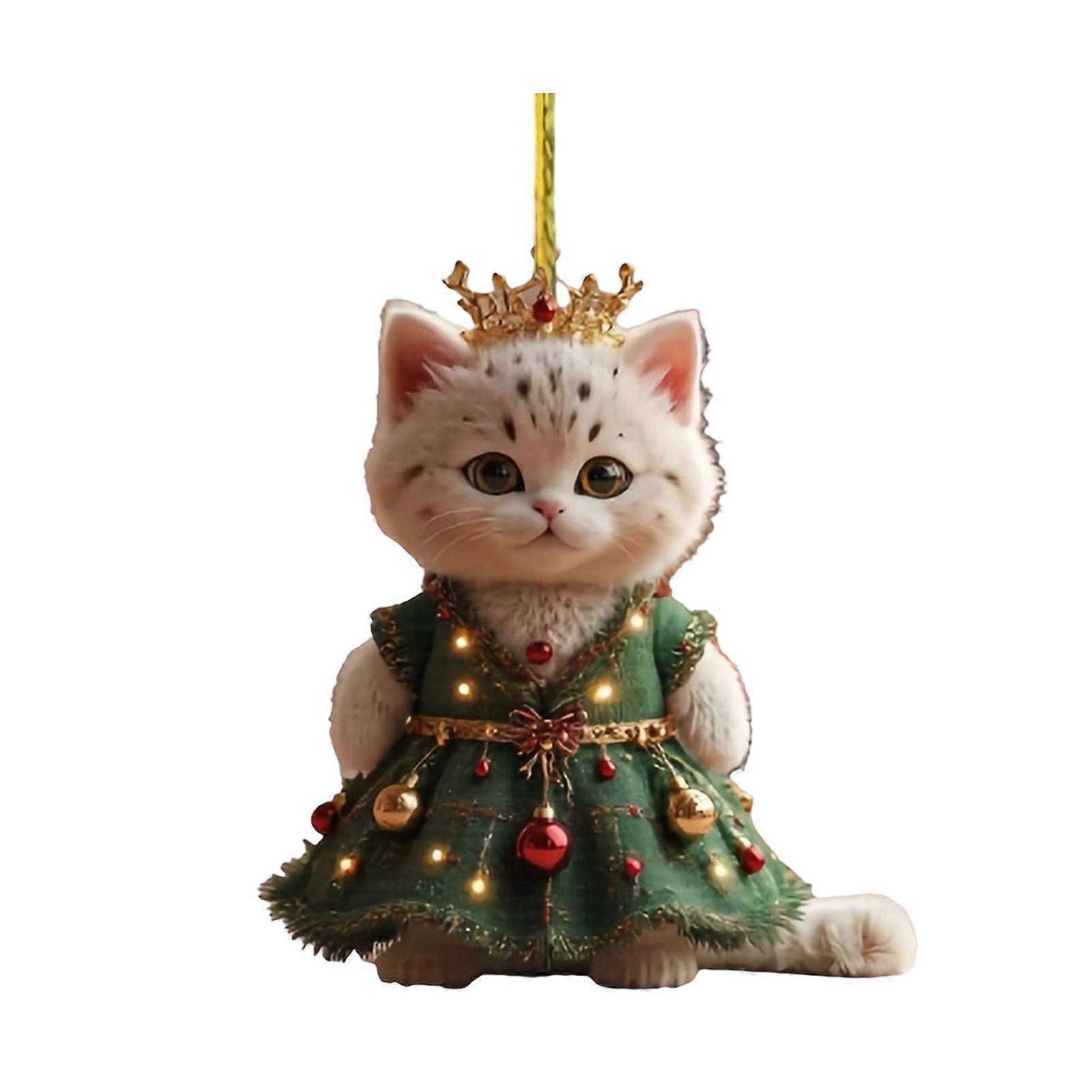 Cute Cat Christmas Ornament Acrylic Christmas Tree Ornament 2D Flat Cartoon Cat Hanging Pendant for Holiday Home Party Decor