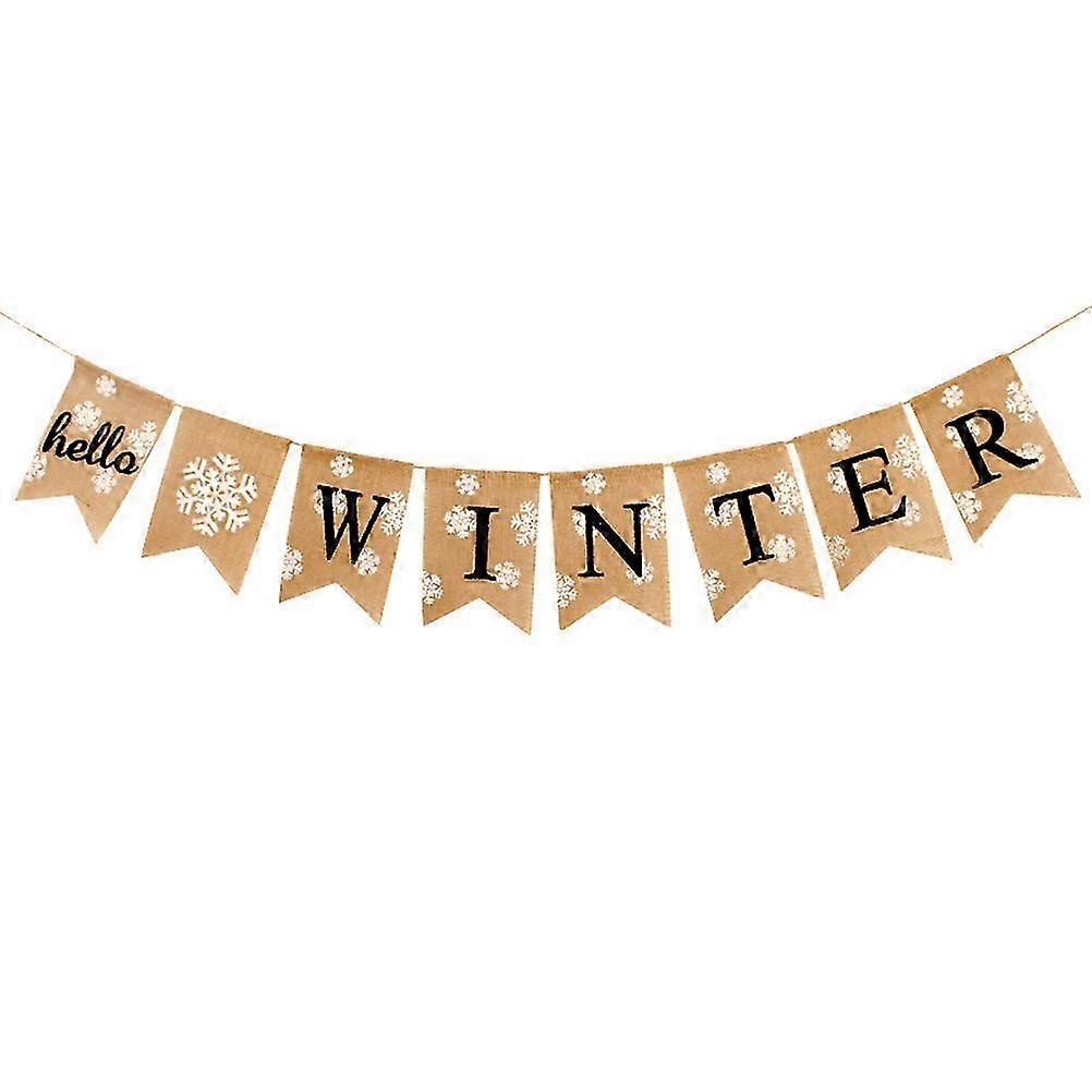Winter Theme Burlap Banner Delicate Snowflake Swallowtail Garland Letter Printing Bunting Flag Linen Party Supplies Deco18*13cm