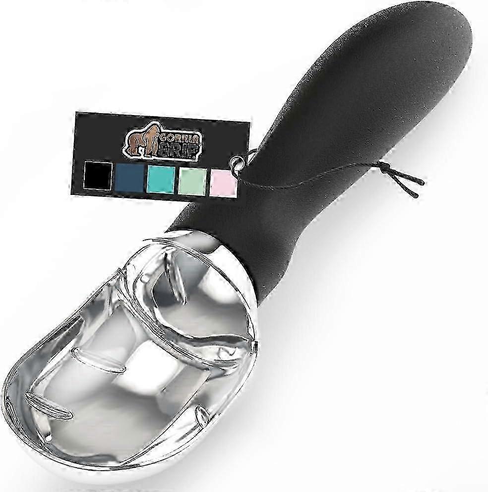 SCOOP THROUGH ROCK SOLID ICE CREAM: never struggle with scooping stubborn, rock solid ice cream again the Gorilla Grip Ice Cream Scoop is durable and strong constructed from high quality and strong zinc alloy metal, the scoop will glide through icecream smoothly without bending or breaking under pressure COMFORTABLE AND SLIP RESISTANT: keep your hands comfortable while you scoop the handle is ergonomic and features an easy to grip, slip resistant design measures 7.5 inches long and 1.9 inches wide to help you effortlessly dig through ice cream PERFECT SCOOPS: the shape of the scooper gives off perfect curls, helping you to create large and beautiful scoops every time the generous size of the scoop head makes it easy to create picture perfect ice cream sundaes and ice cream cones INNOVATIVE DESIGN: scoop features flat edges to help you get more ice cream along the sides of the carton, as well as grooves that help release the ice cream easily there is also a notch on the handle that will assist you in opening stubborn or frozenshut container lids