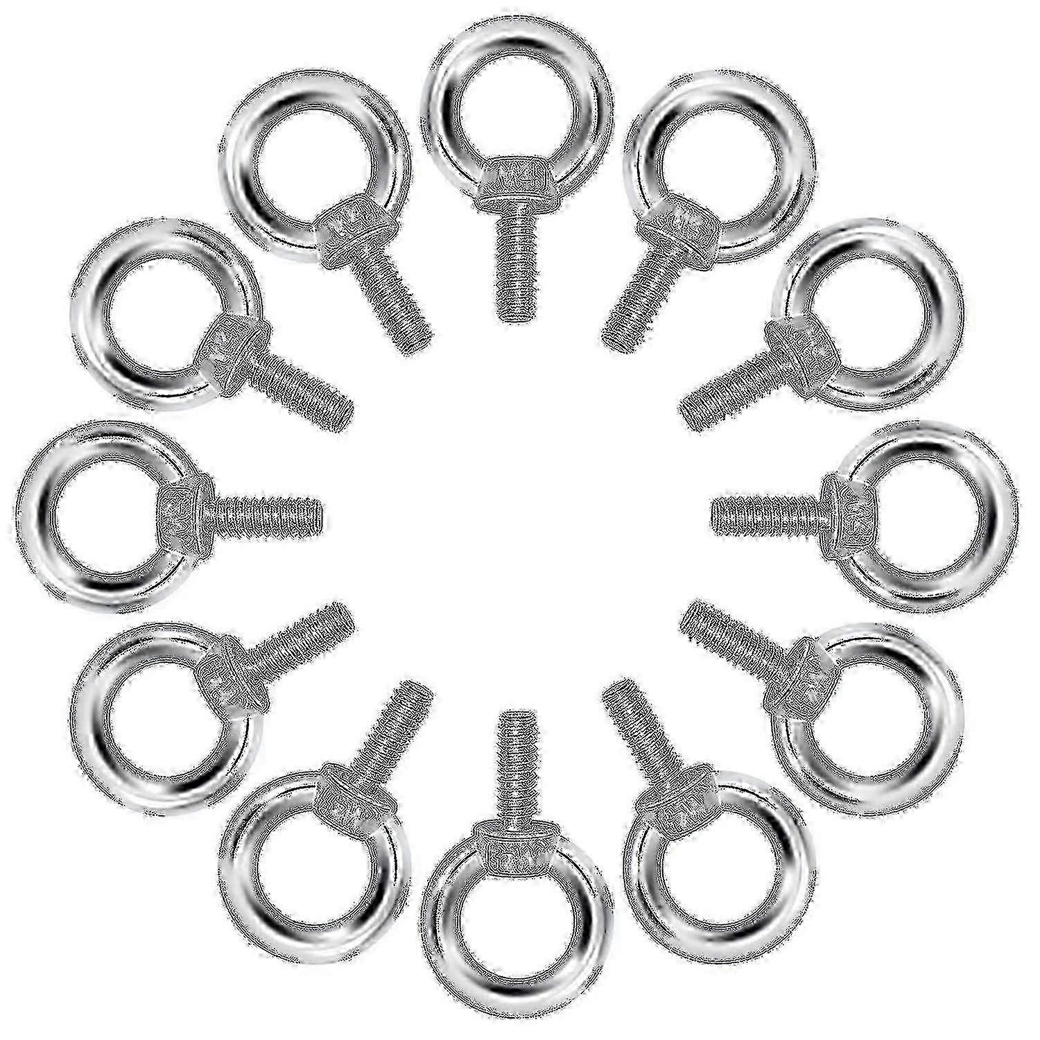Strong And Durable: Our High Quality 304 Stainless Steel Eye Bolts Provide Good Corrosion Resistance In Any Environment, Superior Rust Resistance And Excellent Oxidation Resistance. Specifications: 12 Ring Eye Bolts M4x10, Thread Length: 10Mm, Ring Thickness: 4Mm, Ring Inner Diameter: 10Mm, Ring Outer Diameter: 17Mm, Ring Thickness: 4Mm, Load Maximum Load: 25Kg. Easy To Install: Precision Machined Standard Thread, The Screw Tail Is Smooth And Flat, No Residual Burrs, Deep Internal Thread, Uniform Force, The Screw Is Not Easy To Slip When Rotating. Portable And Convenient: The Eyebolt Is A Fixing And Binding Tool Used To Lift Some Equipment For The Metal Tether To Reduce The Trouble Of Fixing The Rope, Saving Your Time And Effort . Wide Applications: Widely Used In Ns The Fields Of Diy, Hardware, Automotive, Home Improvement And Industrial Construction. Ideal For Lifelong Lifting, Fixing And Clamping Parts.