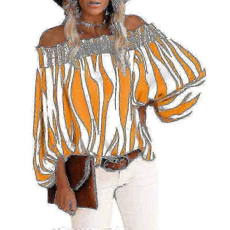 Women's Fashion Strapless Blouse with Bubble Sleeve and Striped Design_1