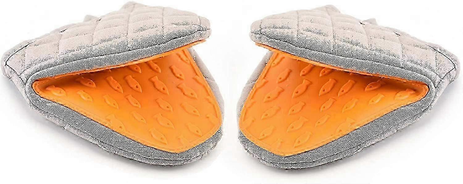 Improved Oven Mitts - Heat Insulation Short Oven Gloves with Crocodile Mouth Shaped Silicone Potholder for Cooking, Baking & Grilling - Orange