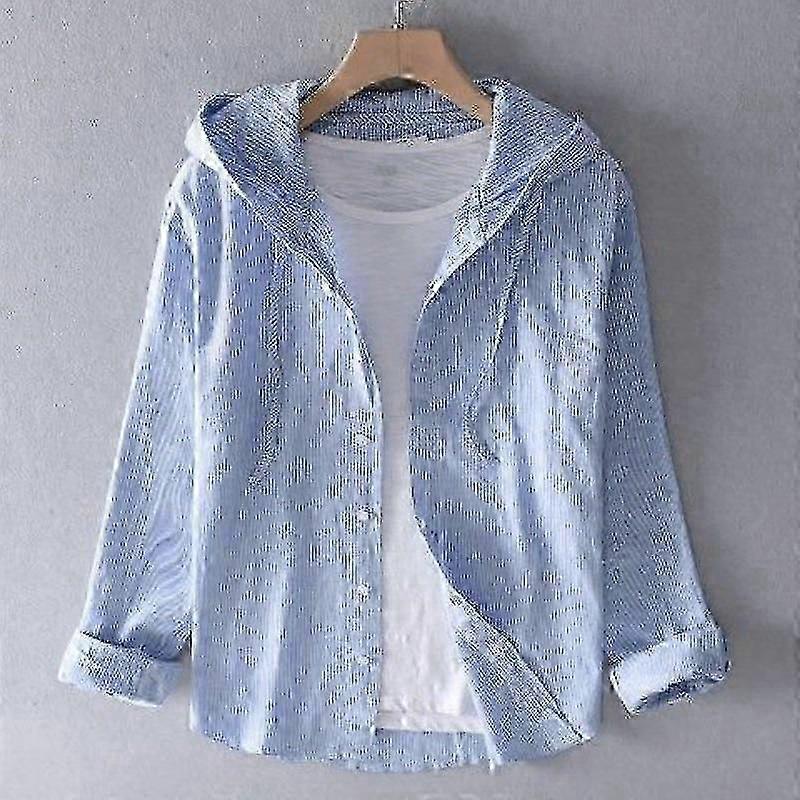 Men's Spring-Autumn Casual Large Hooded Stripe Shirt with Sun Protection