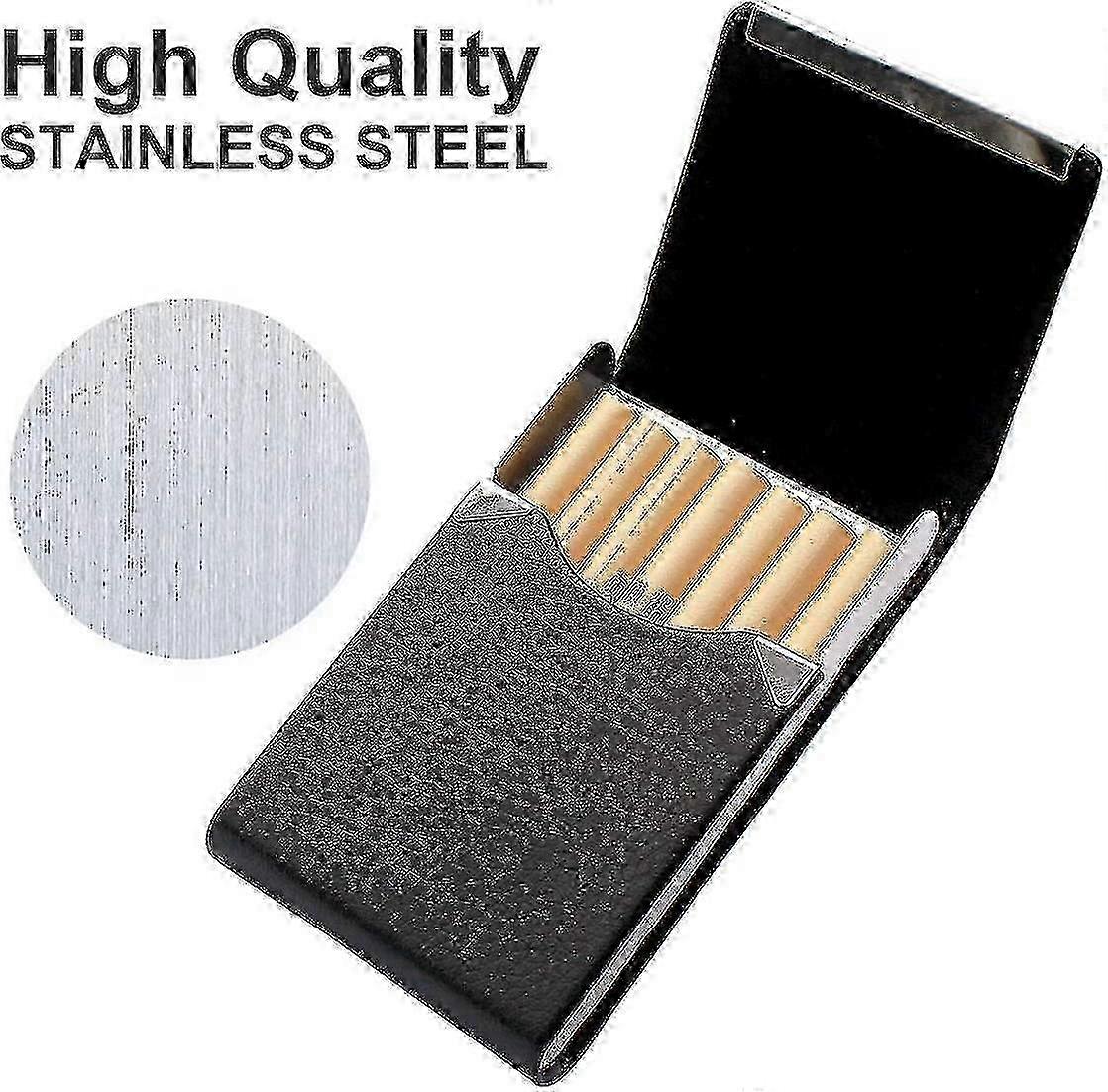 Metal Cigarette Case Box with PU Leather Holder - Slim Pack for Men & Women in Black