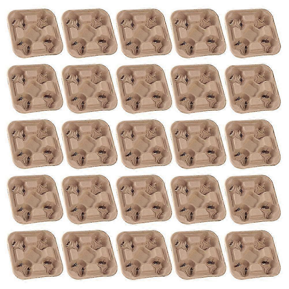 25 Pcs Degradable Cup Holder Tray Coffee Cup Take Out Trays Portable Cup Holders23X23CMKhaki