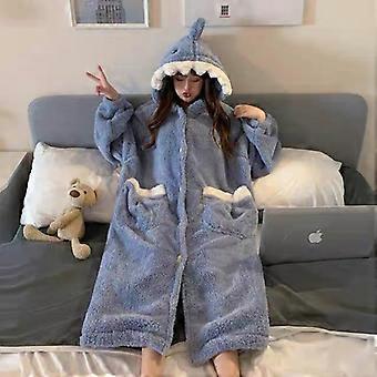 Shark nightgown pajamas women's autumn and winter coral fleece long home clothes