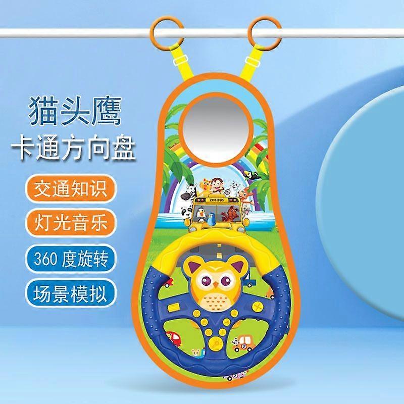 360-degree rotating mini steering wheel toy carpet for car back seat, suitable for driving simulators and early education machines, with an owl-shaped