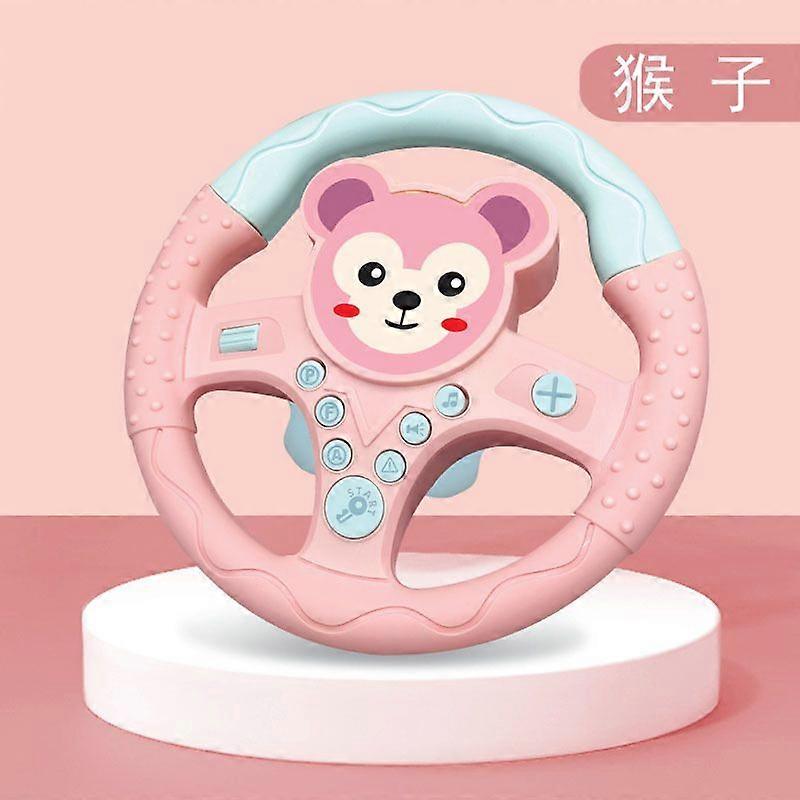 360-degree rotating mini steering wheel toy blanket for car back seat, driving simulator, early education machine, monkey, pink OPP bag (1192B-8 Chine