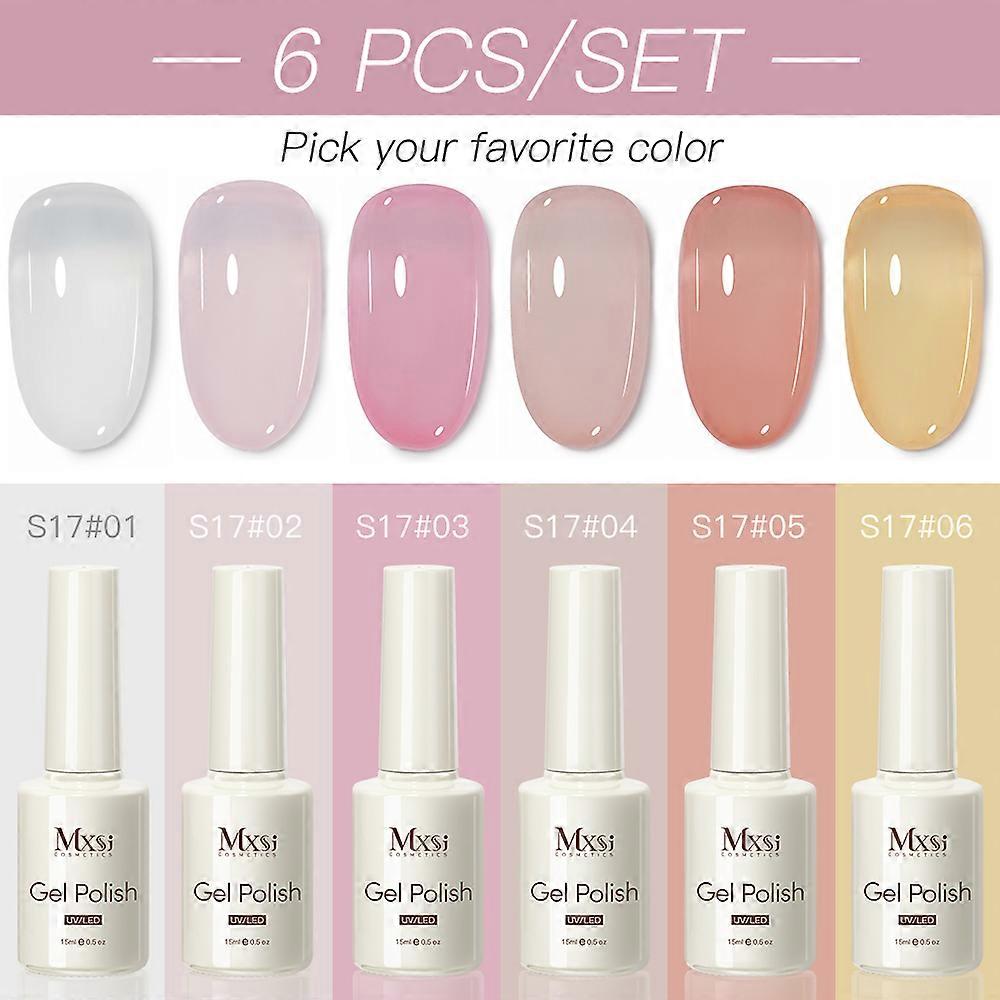 6PCS/SET 15ML Nude Pink Jelly Nail Gel Polish Set Summer Translucent Vernis Semi Permanent UV LED Soak Off Nail Art Manicure Kit