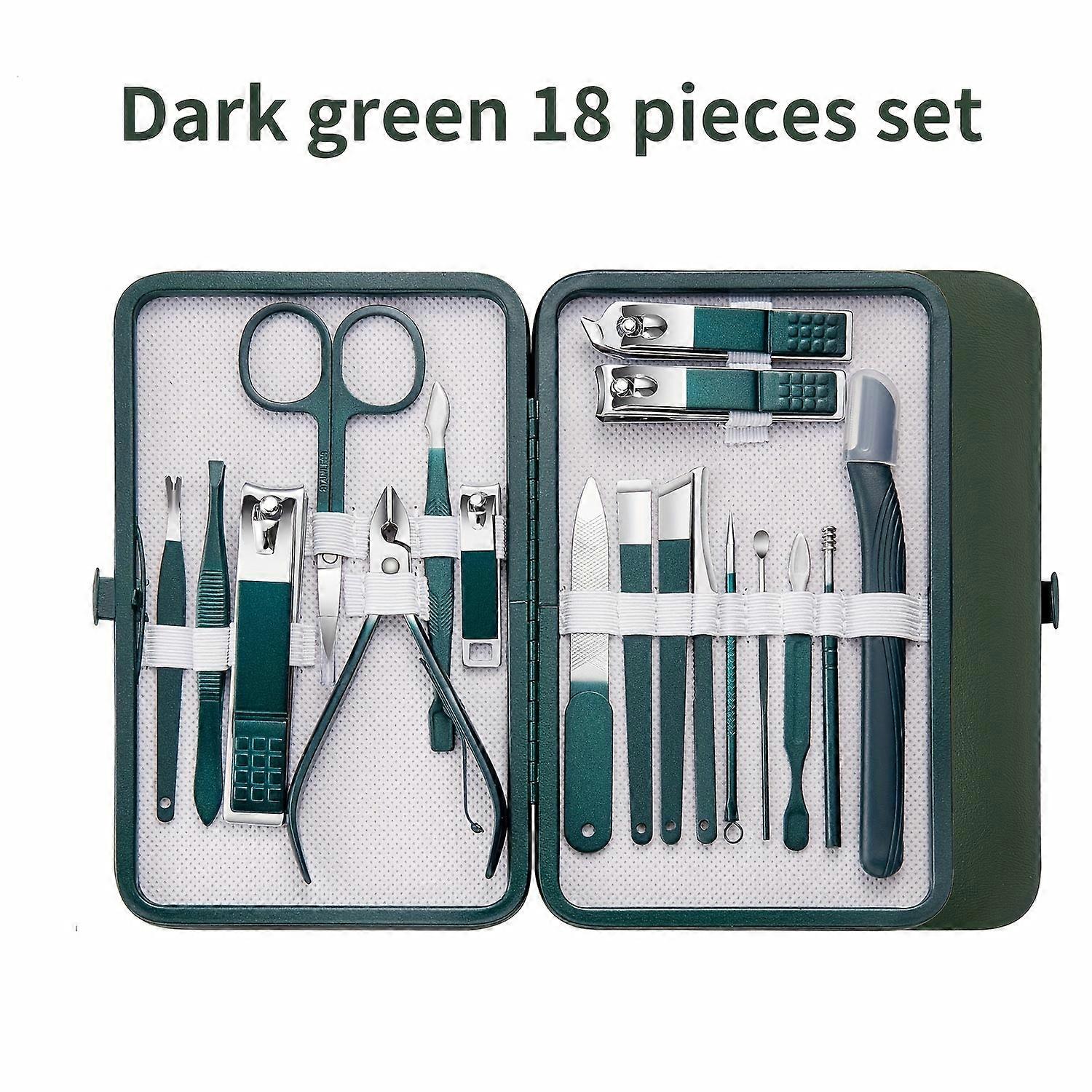 18 Pcs Manicure Set Nail Clippers Kit Professional Stainless Steel Nail Care Tools with Leather Travel Case For Man and Women