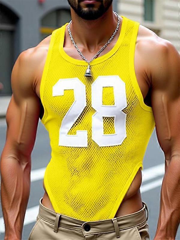 Men's Digital Print Sheer Mesh Sleeves Bodysuit Sexy