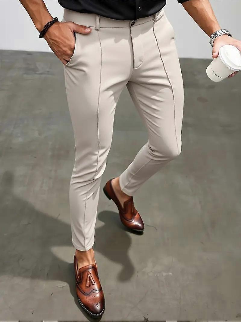 2025 Autumn Solid Color Men's Casual Trousers Elastic Pleated Trousers