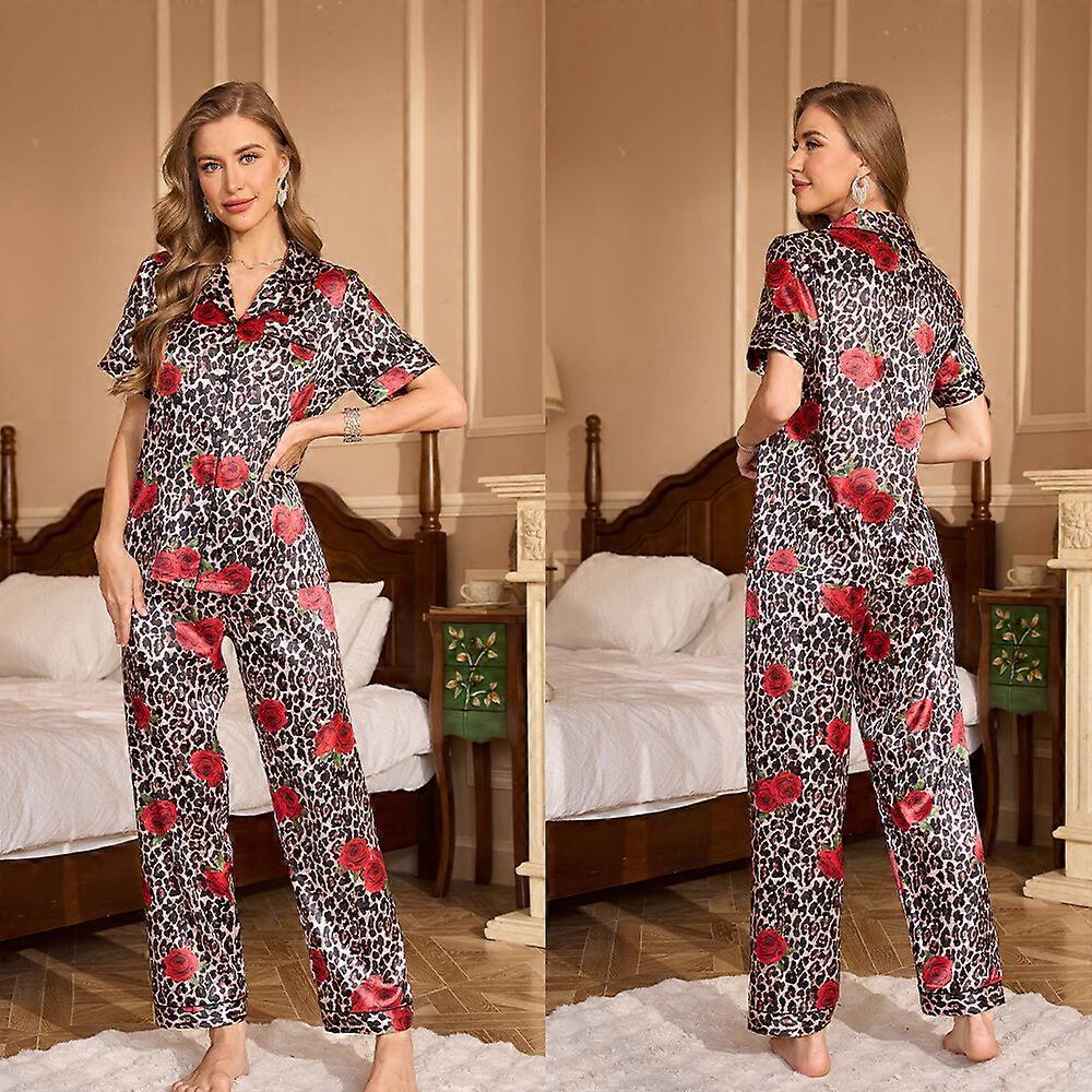 Silky Satin Pajamas Pyjamas New Short Sleeve Women's Sleepwear Loose Lounge Set