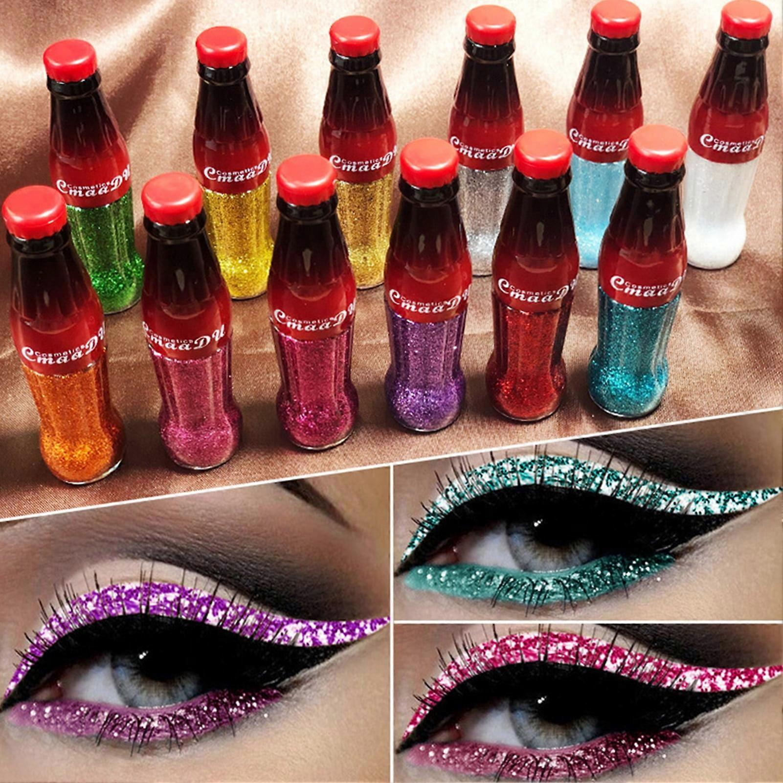 AURORA TRADE CmaaDu Cola Bottle Glitter Liquid Eyeliner Waterproof Shimmers Colored Makeup