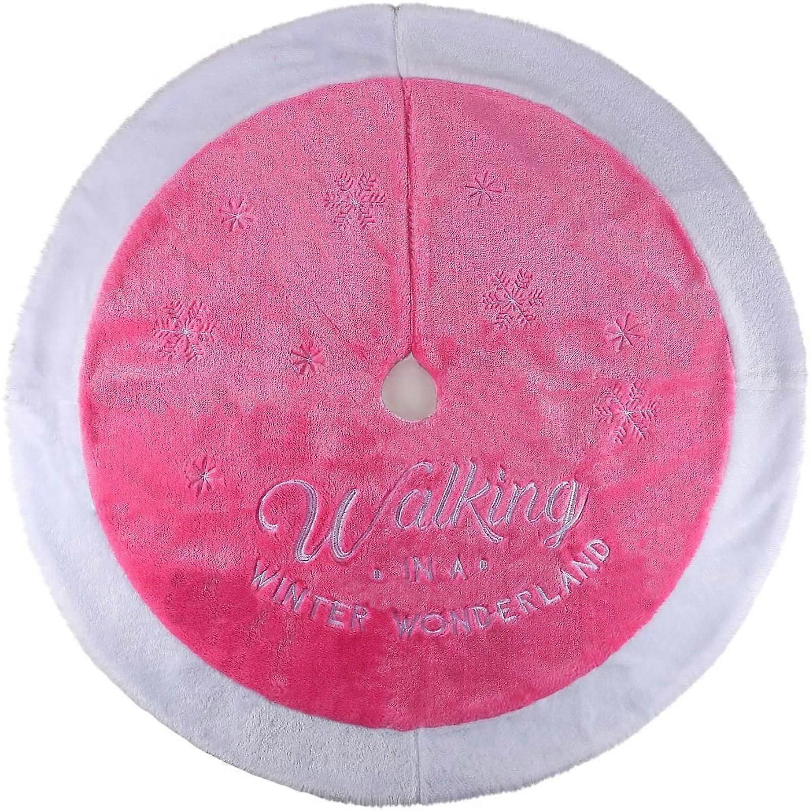 Pink 36" Plush Christmas Tree Decoration Pad with Embroidered Snowflakes, Washable Holiday Decor for Christmas Parties