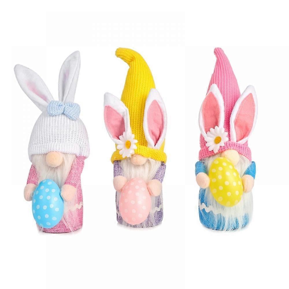 3 PCS Easter Bunny Gnome Plush Decor, Scandinavian Tomte Elf with Eggs, Stuffed Rabbit Gnomes Ornament, Nordic Swedish Dwarf Figurines, Table Decor