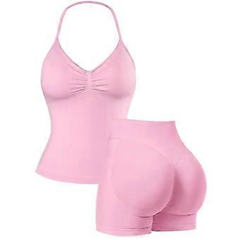 Women's Solid Cami Top & High Waist Skinny Shorts Sportswear Set, Breathable Comfortable Seamless Sports Set for Yoga Gym Workout Running Fi