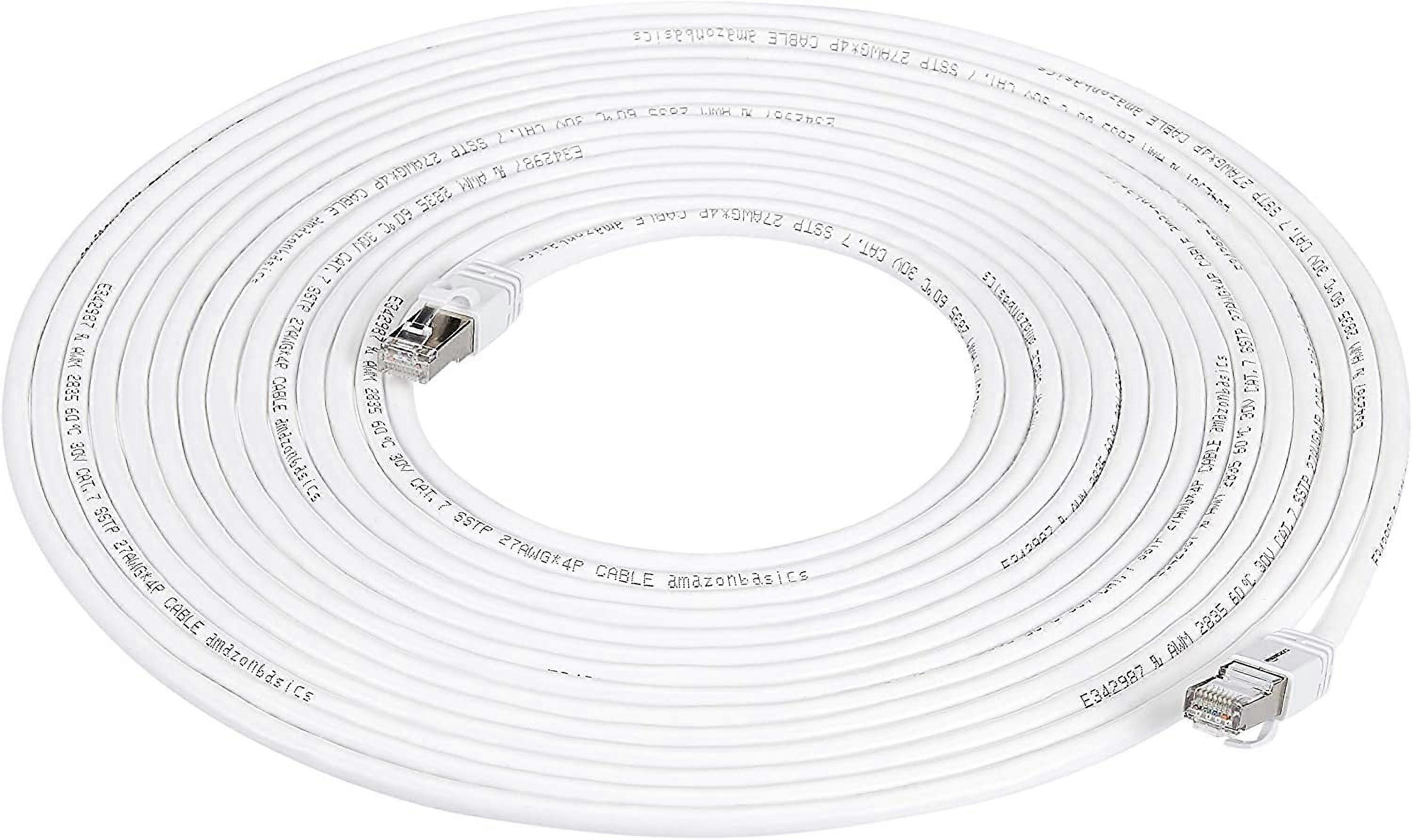 Basics RJ45 Cat 7 High-Speed Gigabit Ethernet Patch Internet Cable, 10Gbps, 600MHz - White, 50-Foot