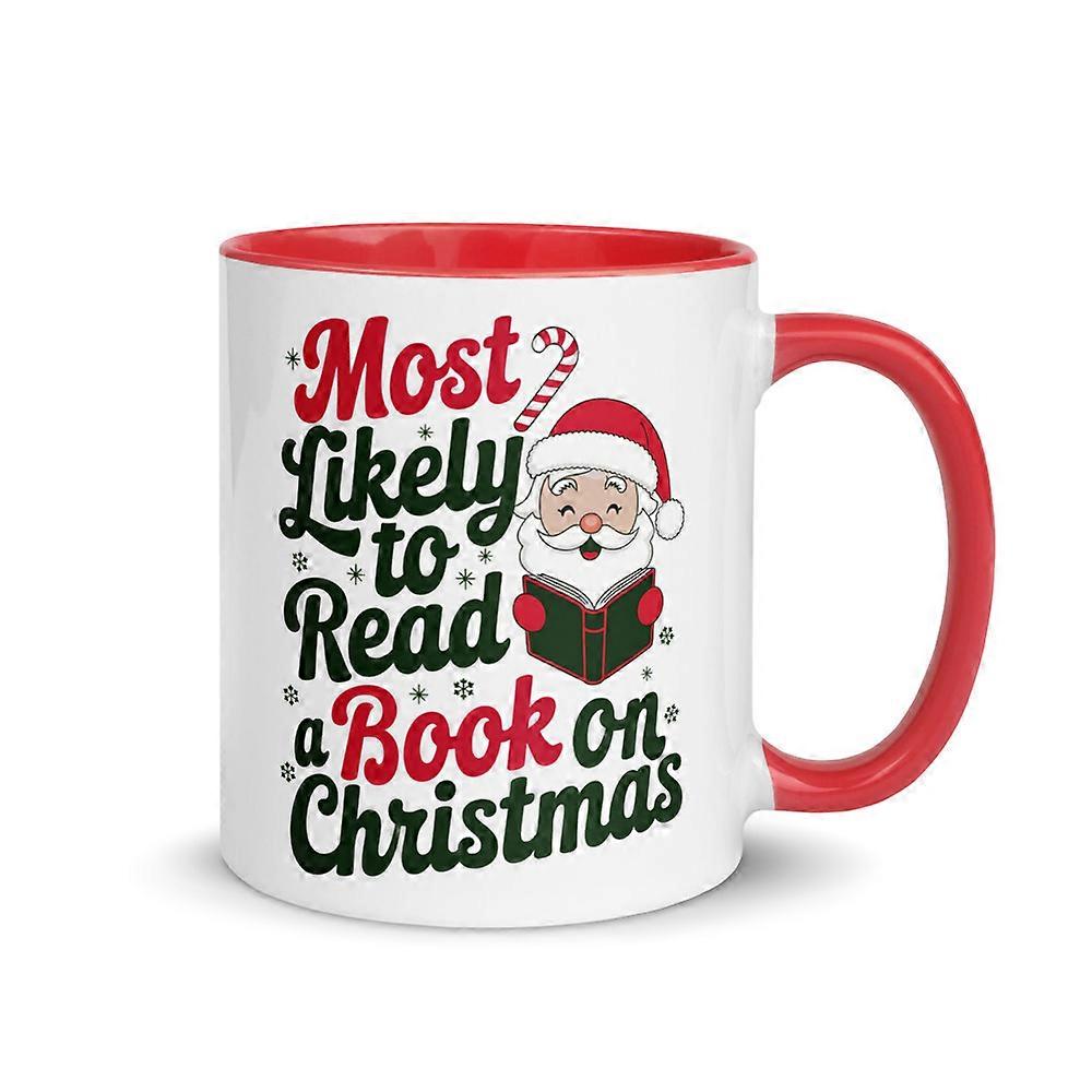 Family Matching Xmas Mug with Color Inside, Most Likely To Read A Book On Christmas (Red, 11 oz)