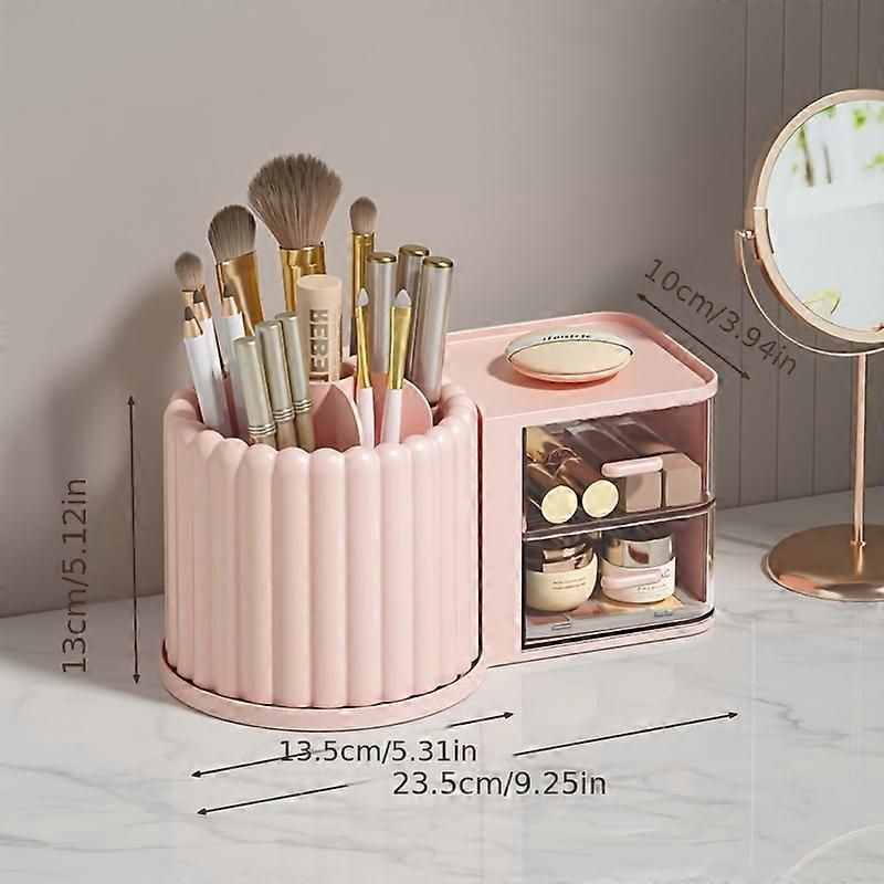 Large Capacity Rotating Desk Organizer - Cosmetic & Stationery Storage with Dividers, Space-Saving Design